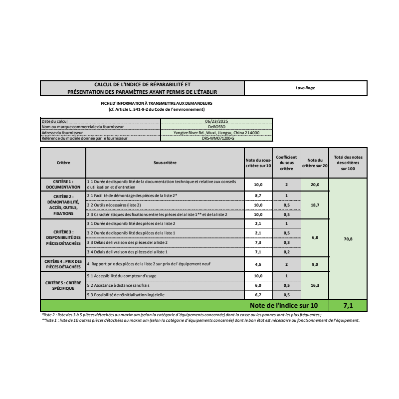 LAVE-LINGE - 7KG - CLASSE A - 1200 TRS/MIN - DEROSSO - DRS-WM071200-G Le lave-linge DeROSSO DRS-WM071200-G est un appareil performant et économique, idéal pour un usage quotidien. Avec sa capacité de 7 kg, il convient parfaitement aux foyers de taille moyenne, permettant de laver efficacement tout type de linge. Classé énergie A, ce lave-linge garantit...