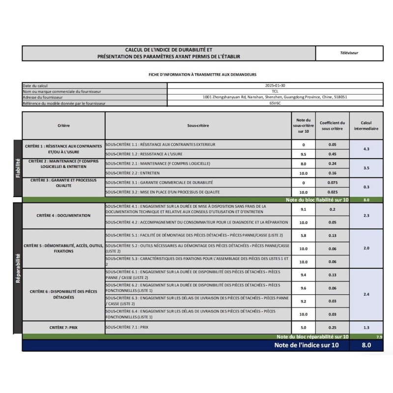TV LED 65" (165 cm) - 4K - TCL - 65V6CX1 Le téléviseur TCL 65V6CX1 est conçu pour offrir une expérience cinéma à domicile grâce à son écran 65" (164 cm) et sa résolution 4K Ultra HD (3840 x 2160). Sa technologie LCD avec rétroéclairage LED et son affichage 10 bitsgarantissent une image plus réaliste, avec des couleurs plus profondes et des contrastes...