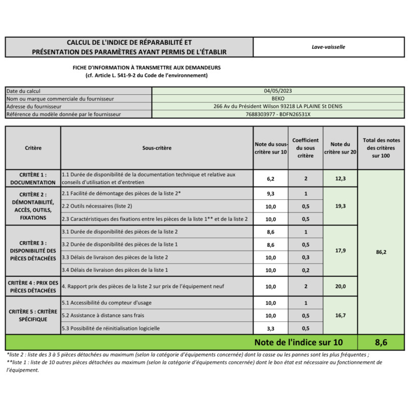 LAVE-VAISSELLE - 15 COUVERTS - POSE LIBRE - BEKO - BDFN26531X