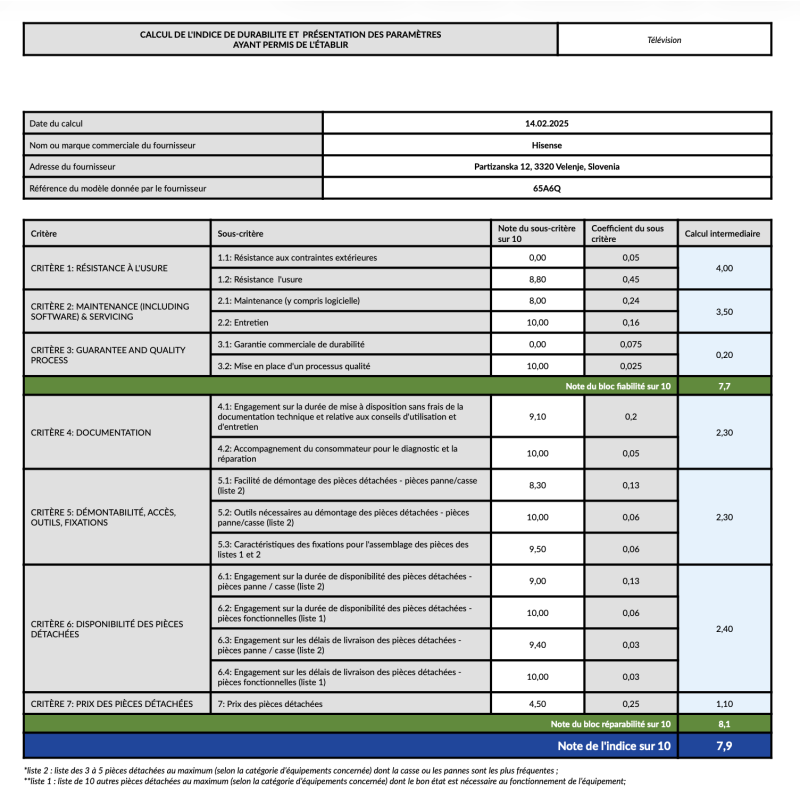 TV LED - 65" (164 cm) - SMART TV EN 4K - HISENSE - 65A6Q