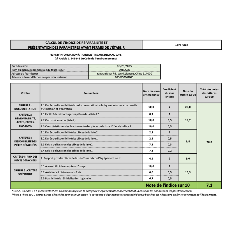 LAVE LINGE - 6KG - DEROSSO - DRS-WM061000 Le lave-linge DE ROSSO DRS-WM061000 est conçu pour répondre aux besoins essentiels du quotidien avec un excellent compromis entre performance, économie et compacité. Sa capacité de 6 kg convient parfaitement aux petits et moyens foyers. Équipé d’un moteur BLDC Inverter, il assure un fonctionnement plus silencieux,...
