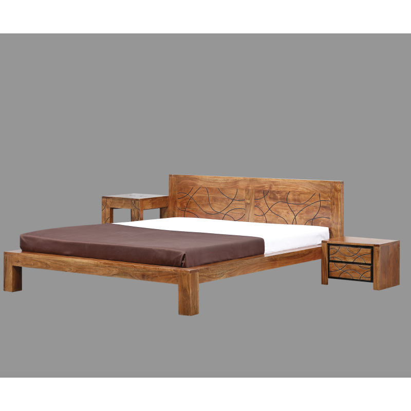 Un lit au design naturel et robuste, conçu en bois d’acacia massif.