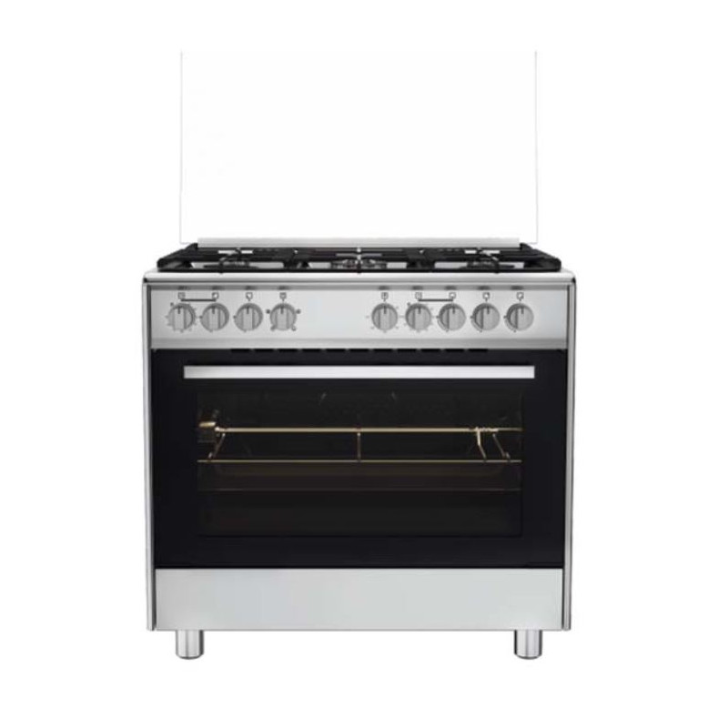CUISINIÈRE À GAZ - 5 FEUX À GAZ + UN FOUR ÉLECTRIQUE - 110L - SILVER - MERLIN