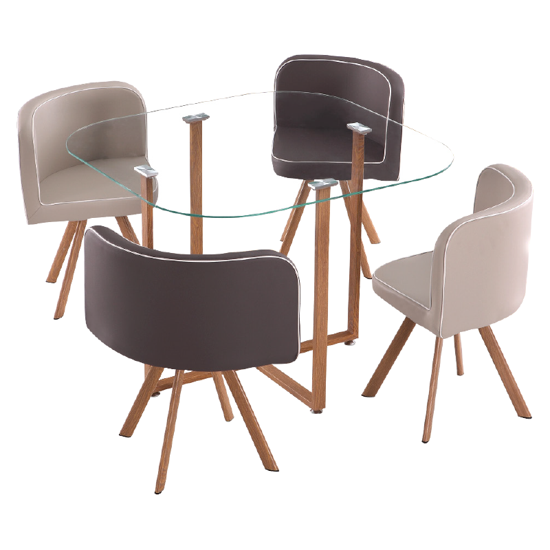 chaises: assises et dossiers en simili bi color marron et coloris beige