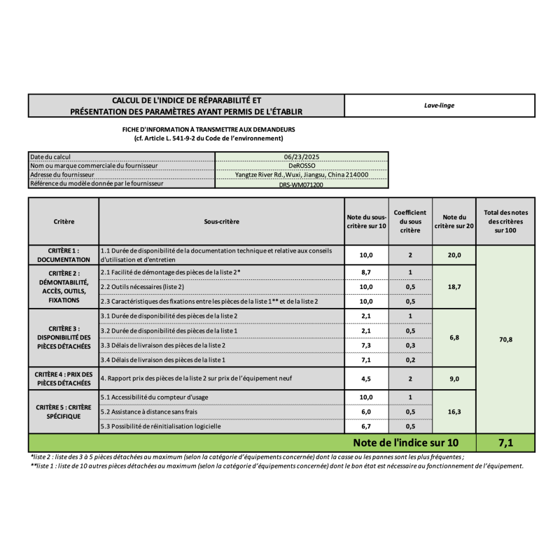 MACHINE À LAVER HUBLOT - 7KG - CLASSE A – DEROSSO – DRS-WM071200 Offrez-vous un lavage performant et économique avec la machine à laver pose libre DEROSSO DRS-WM071200.Avec sa capacité de 7 kg, sa vitesse d’essorage de 1200 tr/min, ses 16 programmes et sa classe énergétique A-10%, elle est idéale pour un foyer souhaitant concilier économies d’énergie et...