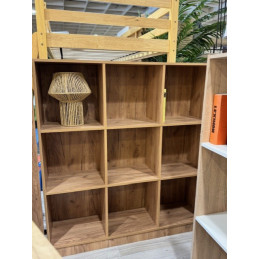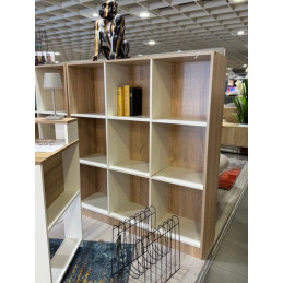Etagère 9 cases Découvrez une solution pratique et au design aéré grâce à ces 6 fenêtres en rotin, tout cela afin de mettre en valeur et d'organiser votre intérieur !  Structure : En panneaux à densité moyenne (MDF) et rotin  Coloris : Beige (chêne) Dimension : 99.5 x 32 x 99 cm  A monter soi-même.