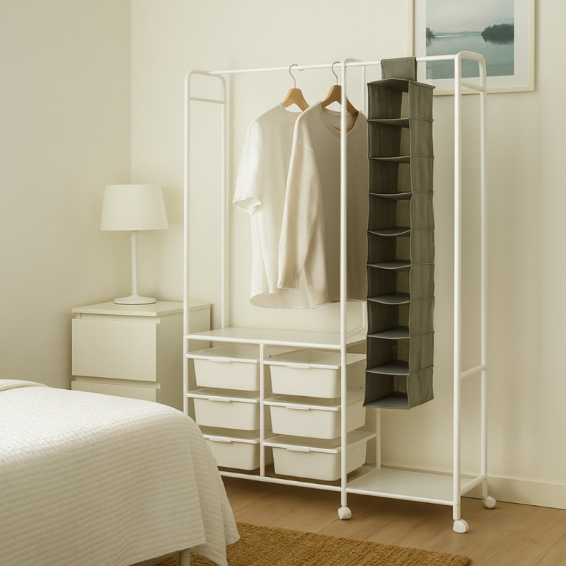 Le porte vêtement Caractéristiques : Structure en métal. Dimensions : 86*45*175 cm. À monter soi-même
