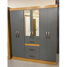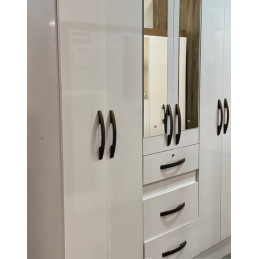 🚪 Armoire 4 portes + 2 tiroirs – Bicolore Blanc & Oak – Poignées argentées ⭐ Description  Apportez style, espace et fonctionnalité à votre chambre avec cette armoire moderne bicolore blanc et chêne (oak). Dotée de 4 portes et 2 tiroirs, elle offre une grande capacité de rangement tout en apportant une touche élégante et contemporaine à votre...