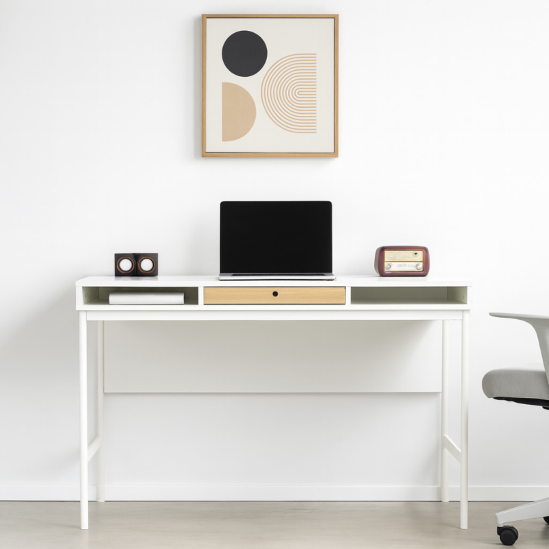 Bureau moderne avec tiroir et niches – Blanc & chêne