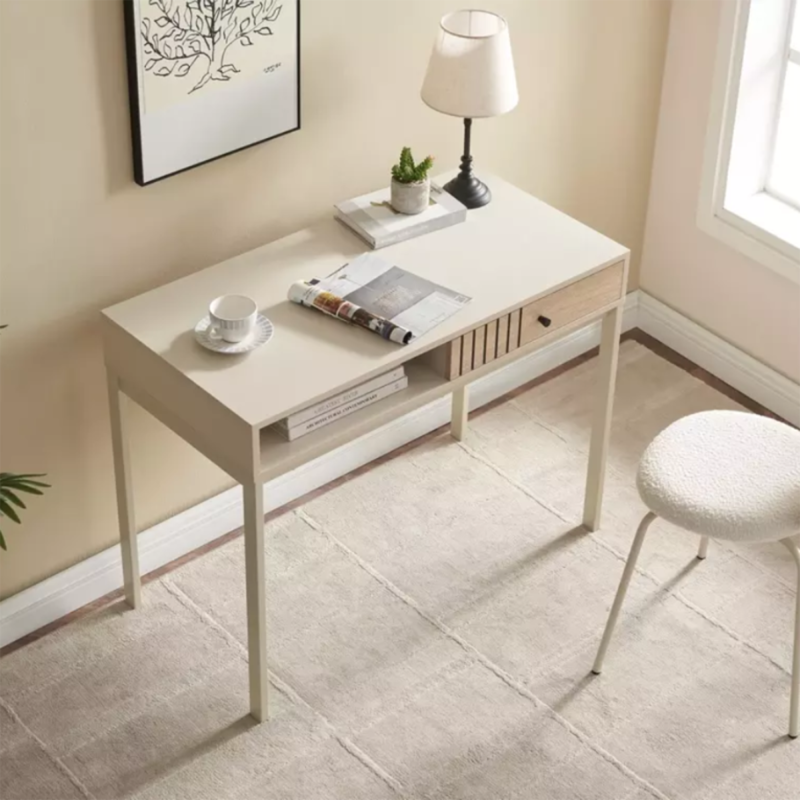 Meuble Console avec Tiroir et Niche – Crème & Chêne