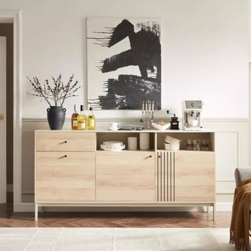 Ce buffet allie grande capacité de rangement et design épuré. Doté de 3 portes et d’un tiroir, il est idéal pour organiser votre vaisselle, linge de table ou autres objets du quotidien. Son style bicolore chêne alpin et blanc s’intègre facilement dans un intérieur contemporain, pour un rendu chaleureux et moderne.