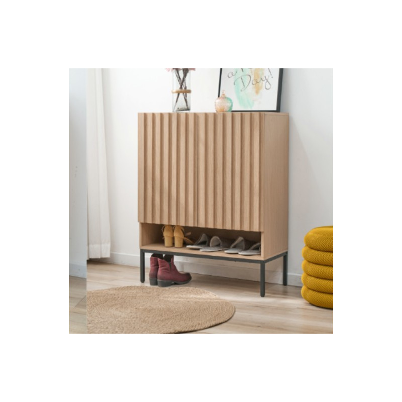 Avec ses 2 portes battantes, ce meuble à chaussures offre un espace fermé pour stocker plusieurs paires tout en gardant votre entrée ordonnée et épurée.