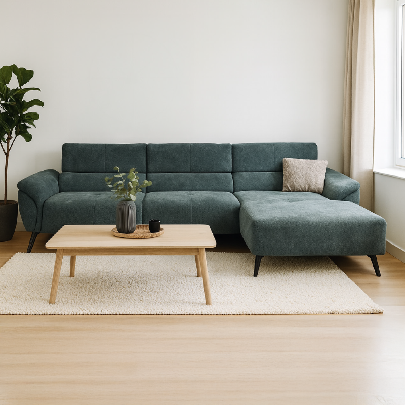 Revêtu d’un tissu 100 % polyester, ce salon associe confort et durabilité.