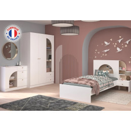 En panneaux de particules et panneaux de fibres revêtu de papier décor blanc imitation chêne.