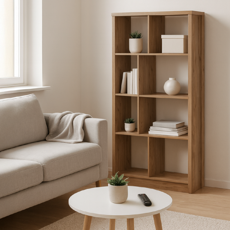 Etagère 4 cases Ce rangement modulable beigne dans un design aéré grâce à ces 6 fenêtres en rotin, tout cela afin de mettre en valeur et d'organiser votre intérieur ! Ce meuble à 4 cases vous permet non seulement d'exposer vos éléments de décoration mais aussi les petites touches de cannage apportent un effet naturel et cosy.  Structure: En panneaux à...