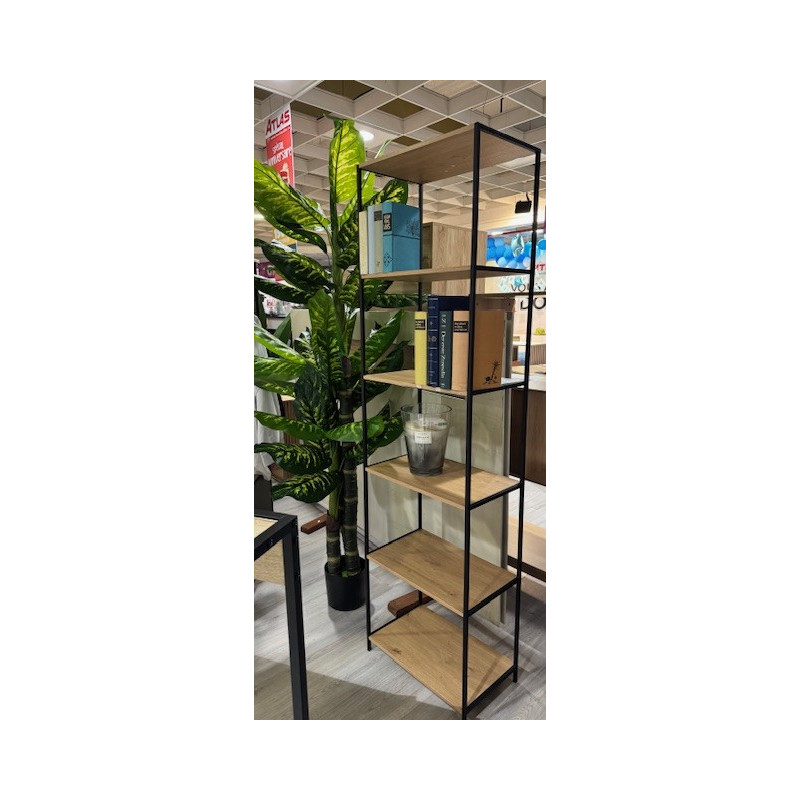 Étagère design 6 tablettes – Bois naturel et pieds métal noir.