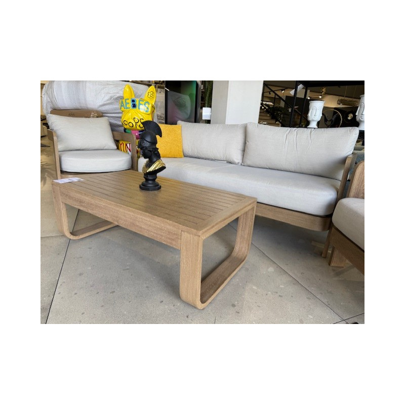 Salon de jardin en aluminium – Finition aspect bois, coussins beige