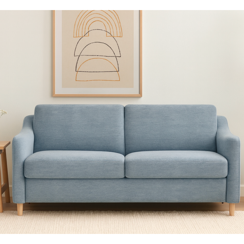 Apportez confort et praticité à votre salon avec ce canapé convertible en lit au design moderne et fonctionnel. Son revêtement en tissu 100% polyester offre une texture douce et résistante, tandis que son garnissage en mousse polyuréthane (densité 12/24 kg/m³) garantit un confort optimal au quotidien.