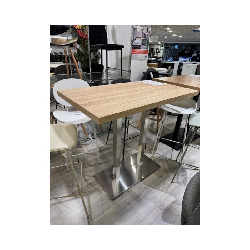 Table de bar au design moderne et élégant, parfaite pour une cuisine, un espace repas ou un coin détente. Son plateau en décor chêne Artisan s’associe à un piètement en acier inoxydable poli ton silver pour un style contemporain et raffiné.