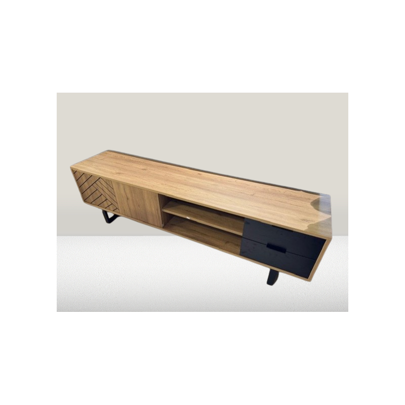 Meuble TV 180 cm 2 portes + 2 tiroirs imitation chêne gris anthracite motif géométrique - style moderne