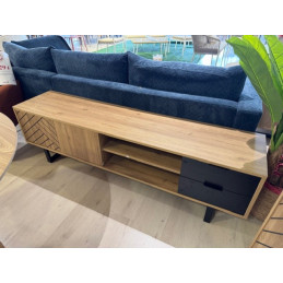 Ce meuble TV est idéal pour accueillir votre écran plat et vos équipements multimédias tout en apportant une touche chaleureuse et moderne à votre espace de vie.