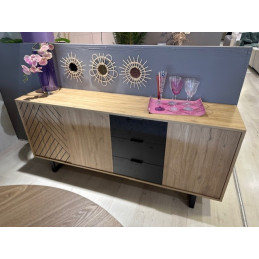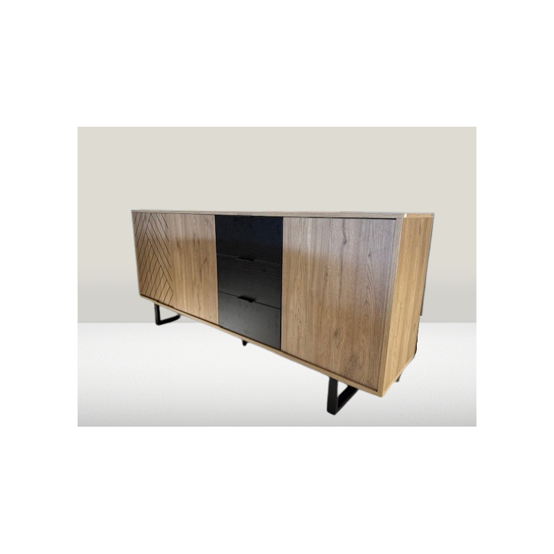 Buffet 3 portes + 3 tiroirs imitation chêne et noir - style moderne avec motif géométrique