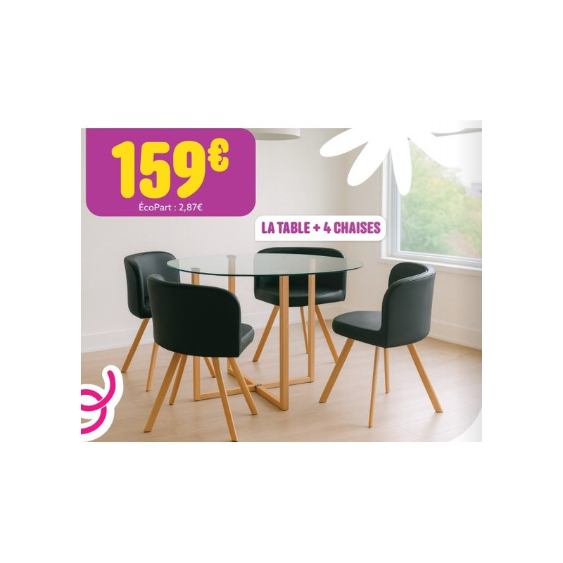Ces chaises au revêtement en PVC noir offrent un excellent confort grâce à leur garnissage en mousse polyuréthane. Leur design sobre et contemporain s’accorde parfaitement avec la table en verre.
