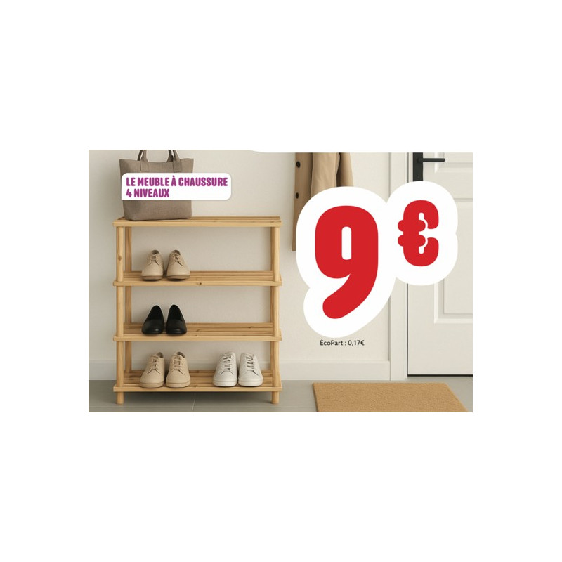 Cette étagère à chaussures en pin naturel offre 4 niveaux de rangement pour organiser facilement vos chaussures tout en ajoutant une touche naturelle à votre intérieur.