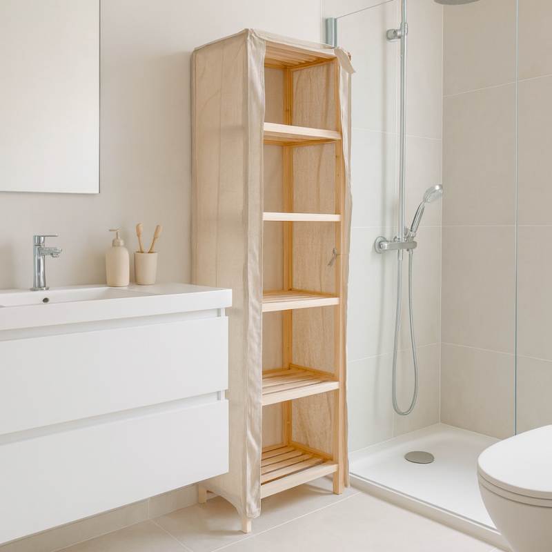 Meuble TV avec 2 portes et étagère vitrée. Ce meuble TV allie élégance et fonctionnalité avec une structure en panneaux de particules mélaminés décor blanc laqué polyester et une finition brillante. Les façades et côtés des éléments sont réalisés en panneaux de particules décor blanc laqué polyester et décor fausse pierre grise verni polyester, créant un...
