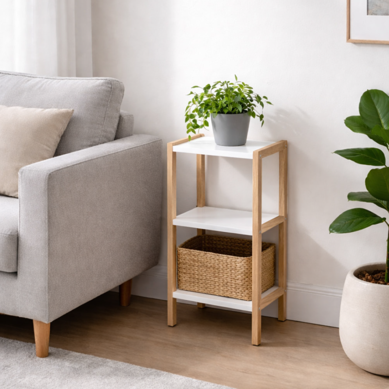 Idéale pour ranger vos livres, objets déco ou accessoires du quotidien, cette étagère compacte trouvera sa place dans une chambre, un bureau ou une entrée.
