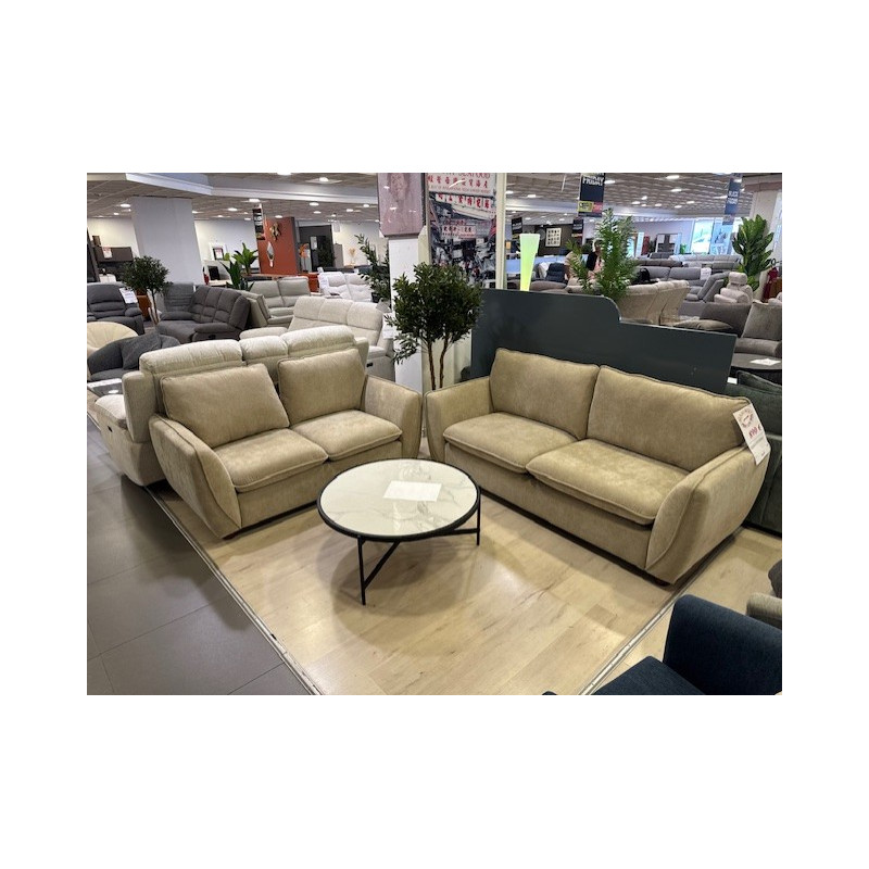Ensemble de salon élégant et confortable composé d’un canapé 3 places et d’un canapé 2 places. Revêtu d’un tissu 100 % polyester résistant, il offre un excellent confort grâce à son garnissage en mousse polyuréthane et son système de suspension associant sangles élastiques et ressorts ensachés. Ses pieds en bois coloris merisier apportent une touche chaleureuse et raffinée à votre intérieur.