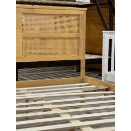 La chambre. Structure en panneaux de particules revêtue de papier décor chêne caramel. L’armoire 3 portes + 2 tiroirs. Dim. L118*P48*H183 cm. Le Lit 160x200 cm. Dim. L167*H90*L206 cm. Le chevet. Dim. 50*40*50 cm. A monter soi meme.