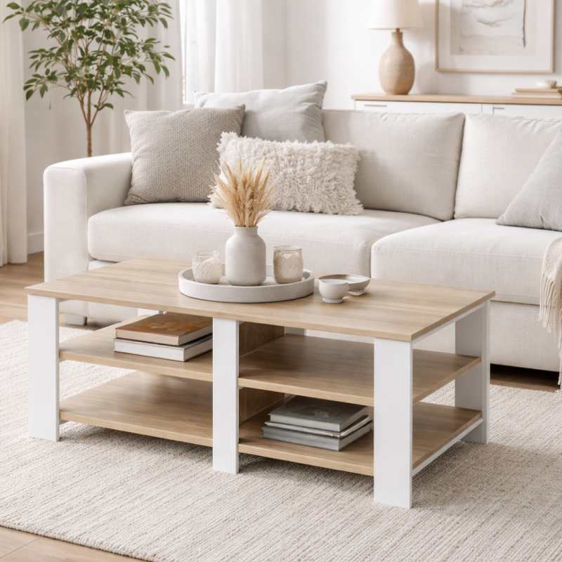 Table basse - Coloris chêne et blanc