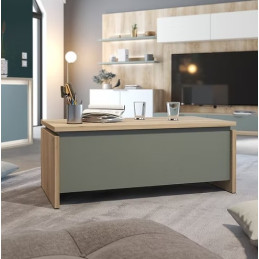 Bureau design chêne et blanc – Plateau bois et pieds métal