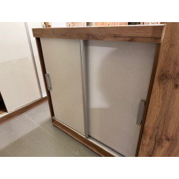 Meuble comprenant 2 portes coulissantes poignées coloris argent armoire comprenant 5 étagères.