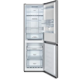 Le réfrigérateur combiné No Frost avec distributeur d’eau 304 L Inox de HISENSE offre confort, autonomie et praticité au quotidien. Doté d’un système Total No Frost, il préserve vos aliments sans former de givre, tout en maintenant une température stable. Son distributeur d’eau sans plomberie, avec réservoir de 3 L, fournit de l’eau fraîche à tout moment. Avec 304 L de volume net, il dispose d’un espace optimisé : 3 étagères, 3 tiroirs de congélation, un bac à légumes, un casier à vin et un éclairage LED. Silencieux (39 dB) et économe (classe E), il combine design moderne, commandes tactiles et fonctions intelligentes