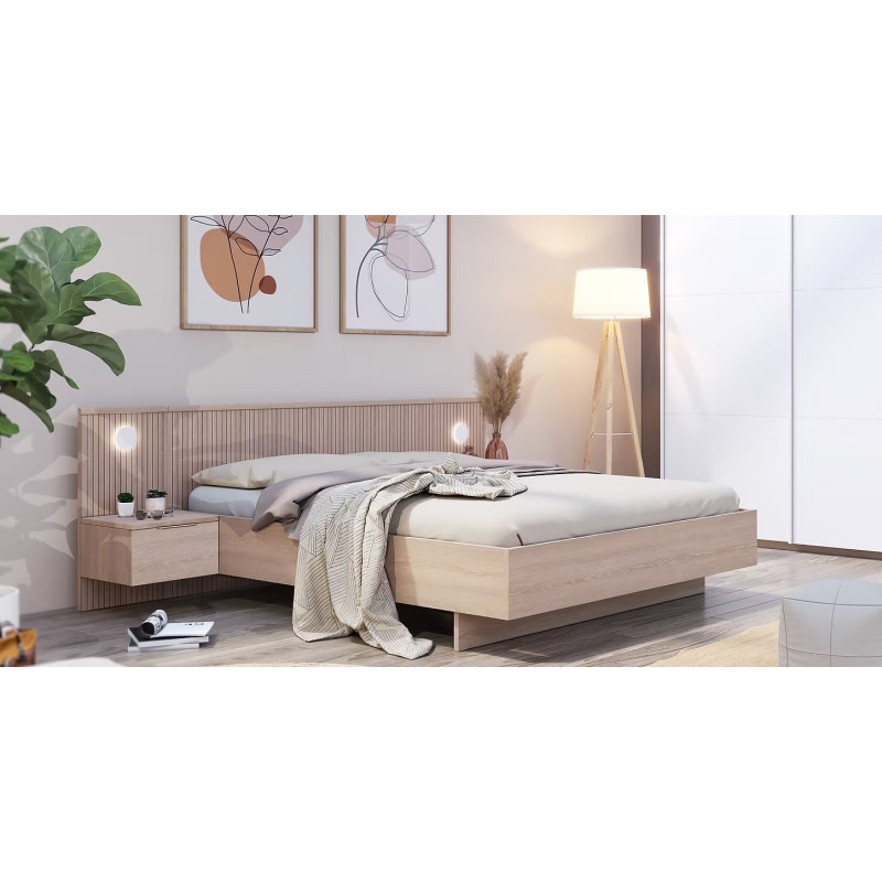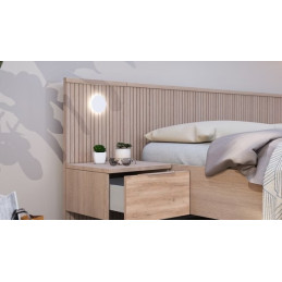 Le lit séduit par son design sobre et chaleureux grâce à sa finition imitation chêne, idéale pour créer une ambiance élégante et naturelle dans votre chambre.