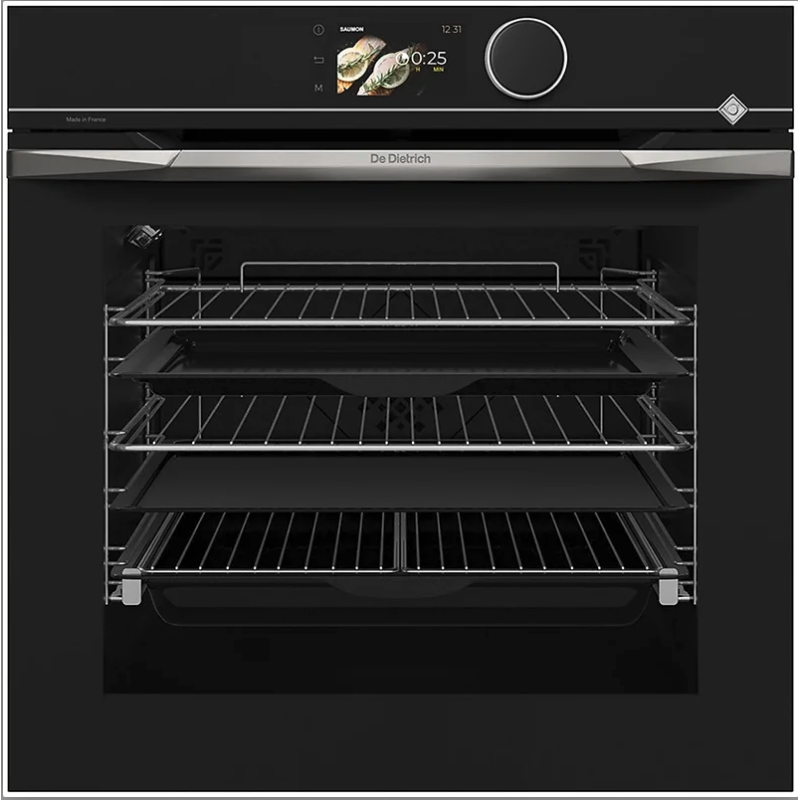 Le four encastrable pyrolyse DE DIETRICH DOP4756X, en finition inox, combine technologie avancée et capacité généreuse de 73 L pour répondre aux besoins des cuisiniers exigeants. Grâce à la chaleur tournante pulsée, il garantit une cuisson homogène sur plusieurs niveaux. Il propose 11 modes de cuisson, 12 programmes automatiques et 35 recettes intégrées, accessibles via un écran LED et des commandes mixtes. Sa porte froide à 4 vitres avec fermeture douce renforce la sécurité et le confort d’utilisation. Adapté aux colonnes encastrables standards, il occupe un espace d’environ 60 cm de profondeur pour une largeur et une hauteur de 59,2 cm.