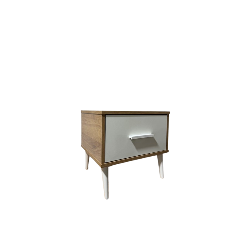 Chevet 1 tiroir – Blanc & finition chêne (Oak)