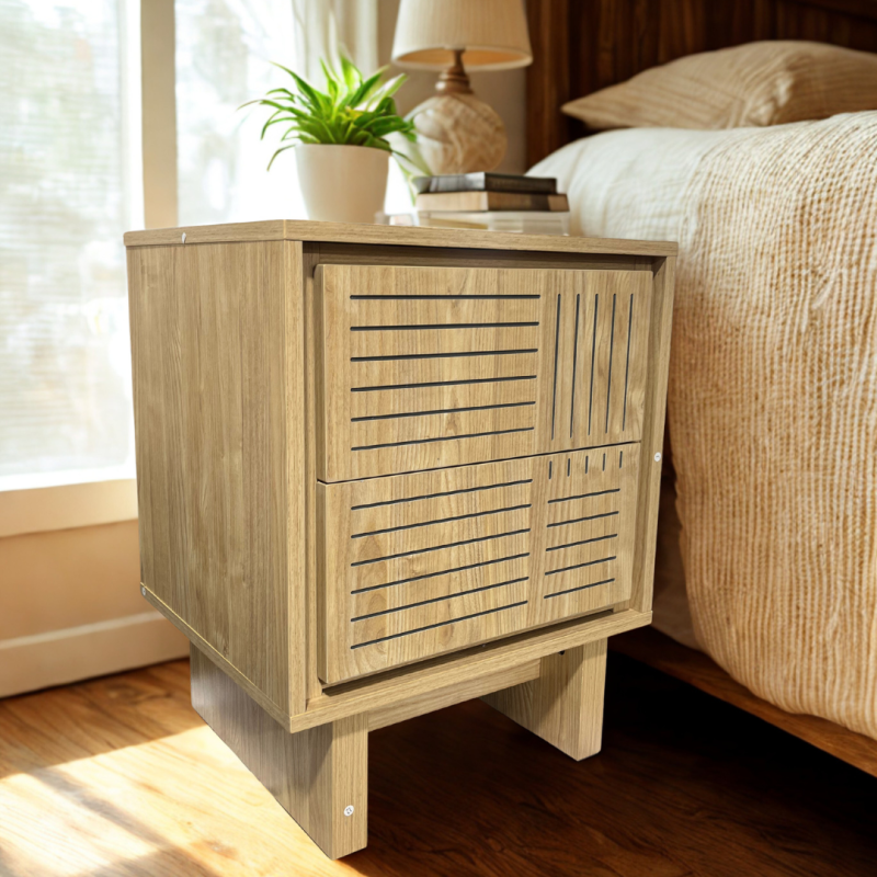 Cette table de chevet à 2 tiroirs est idéale pour accompagner votre lit et organiser vos objets du quotidien. Sa structure en panneaux de particules avec revêtement décoratif lui donne un style simple et moderne, tout en restant pratique et facile à intégrer dans tous types de chambres.