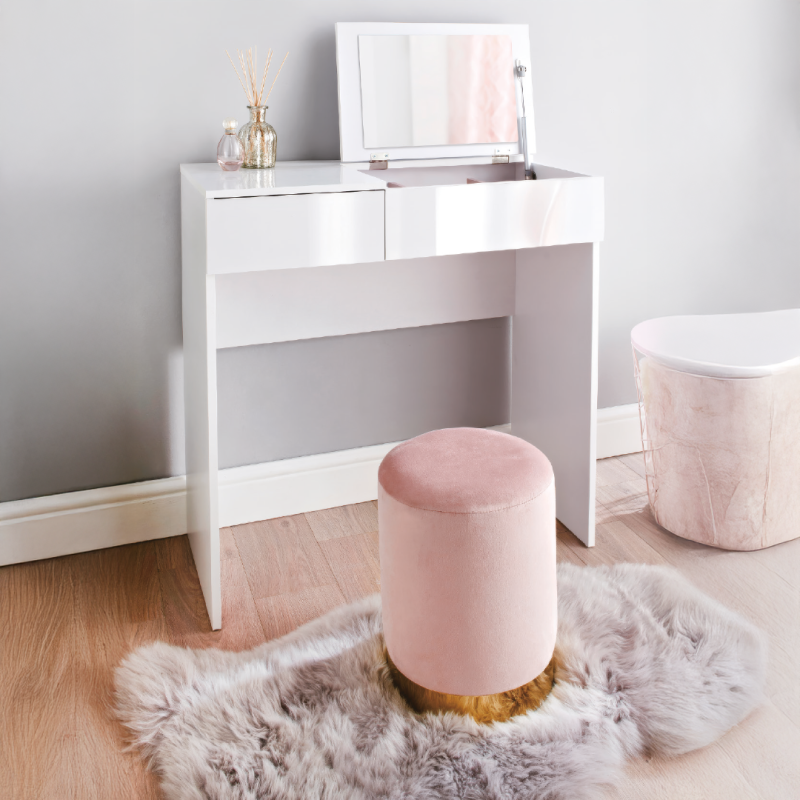 ✨ Coiffeuse / Bureau avec miroir intégré – Blanc & Rose