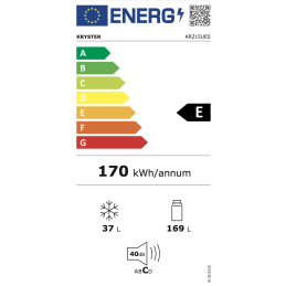 Le réfrigérateur KRYSTER KR215UES est conçu pour répondre aux besoins essentiels tout en offrant une organisation optimale. Son volume net total de 212 L se répartit entre 175 L pour la partie réfrigérateur et 37 L pour le congélateur(top freezer).