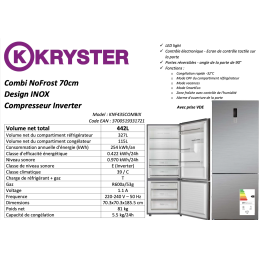 RÉFRIGÉRATEUR COMBINÉ - NO FROST - 442L - INOX - KRYSTER - KNF435COMBIX