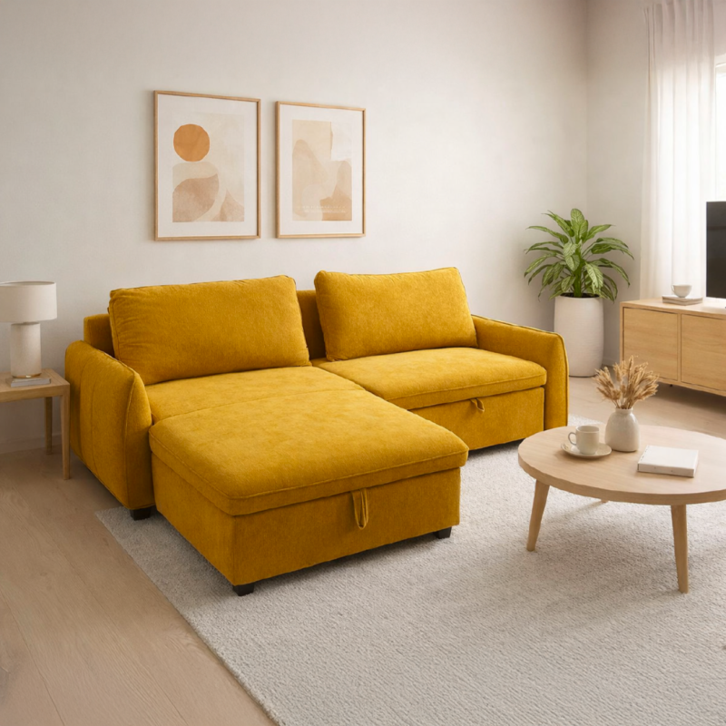 Salon d'angle convertible + coffre de rangement - 3 coloris