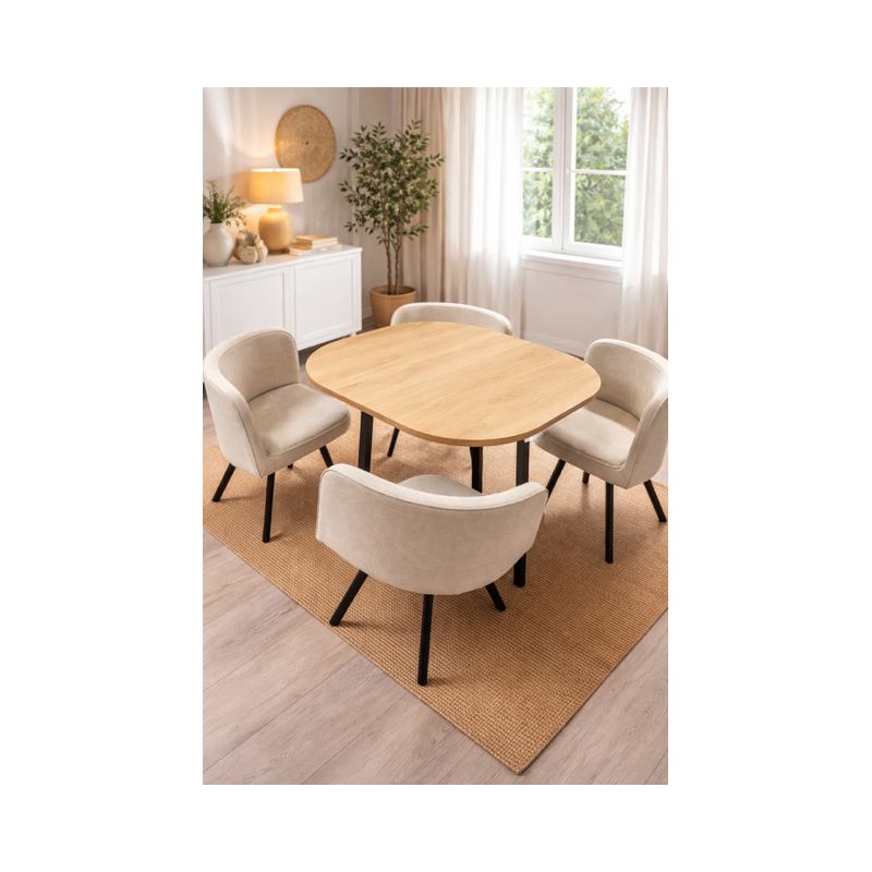 Apportez une touche chaleureuse et moderne à votre intérieur avec cet ensemble composé d’une table et de chaises assorties.