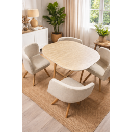 Table effet céramique coloris beige pieds métal de coloris bois