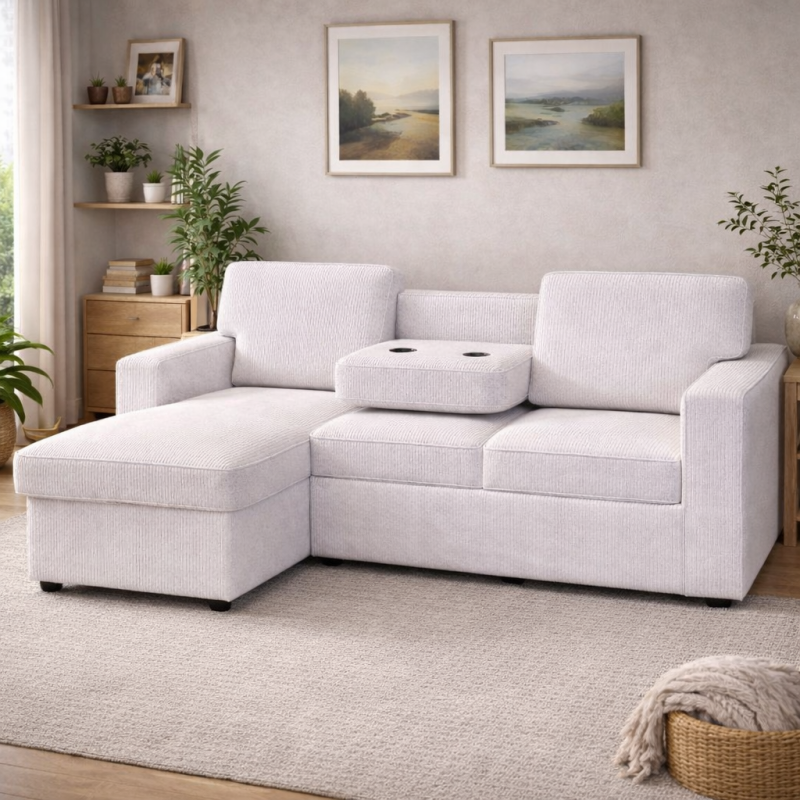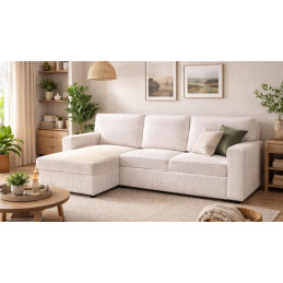 Apportez style et praticité à votre salon avec ce canapé d’angle convertible coloris blanc ou vert. Idéal pour les petits comme les grands espaces, il offre une assise confortable tout en se transformant facilement en lit d’appoint. Son coffre de rangement intégré permet de stocker plaids, coussins ou linge de maison en toute discrétion. Sa tablette de bar ajoute une touche pratique et moderne, parfaite pour poser verres, télécommandes ou objets du quotidien.