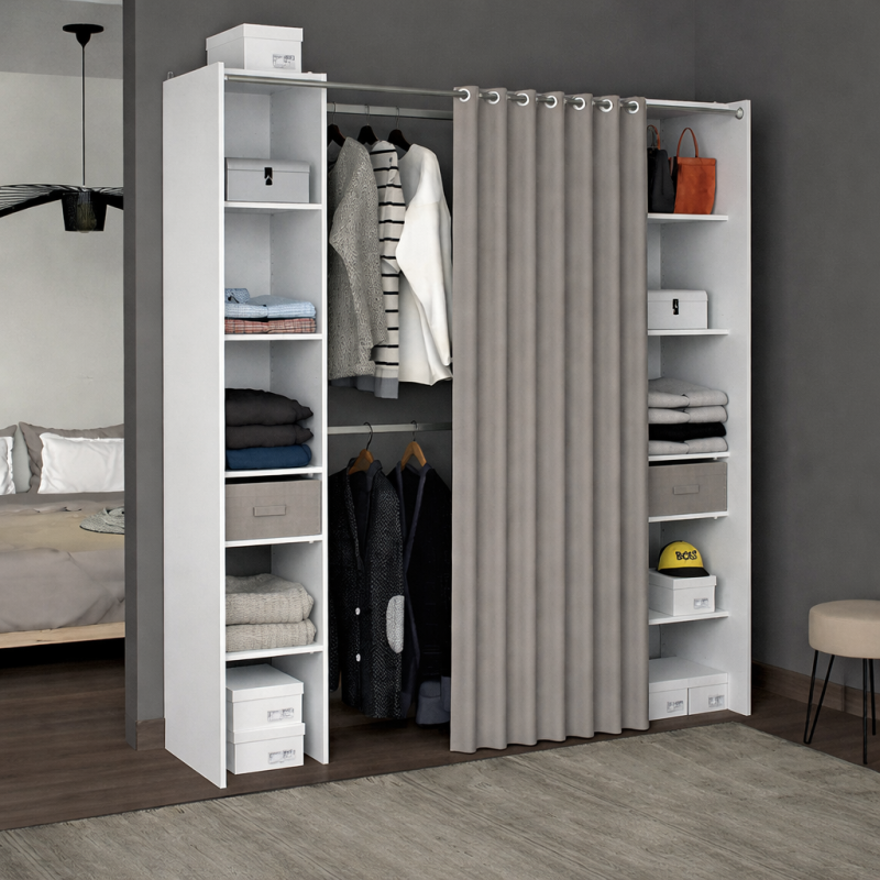 Un design sobre et élégant pour ce dressing ultra-fonctionnel où vous pourrez ranger tout votre linge. Le blanc du meuble et le gris des accessoires lui confère un style universel qui s’adapte à tous les intérieur