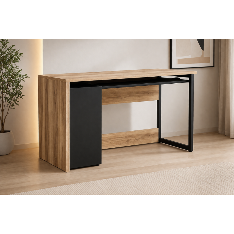 Le bureau enfant 120 cm séduit par son design bicolore moderne, idéal pour créer un espace de travail à la fois pratique et esthétique dans une chambre d’enfant. Ses lignes épurées et sa finition imitation chêne apportent une touche chaleureuse, tout en s’intégrant facilement dans tous les univers déco.
