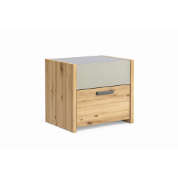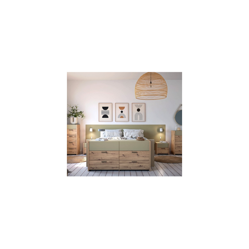 Le chevet 2 tiroirs imitation chêne artisan et sauge est un meuble à la fois pratique et esthétique, idéal pour compléter votre chambre avec élégance. Son design moderne associe la chaleur du bois à une teinte sauge douce et tendance.
